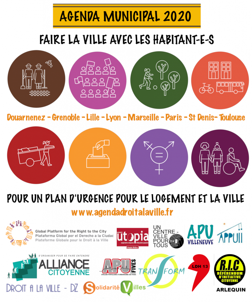 Partenaires Européen : Commonspolis – Citégo – Decentralized municipalist Forum – Un Centre Ville pour Tous – PNS38 – Table de Quartier – Kataliso – Karsi Sanat — Alda – EMN Project – Fund’action – Coalition Européenne pour le droit au logement et à la Ville – Habita –