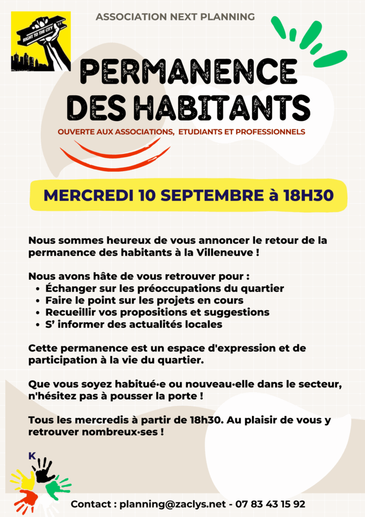 Nous sommes heureux de vous annoncer la reprise de notre permanence des habitants à la Villeneuve !